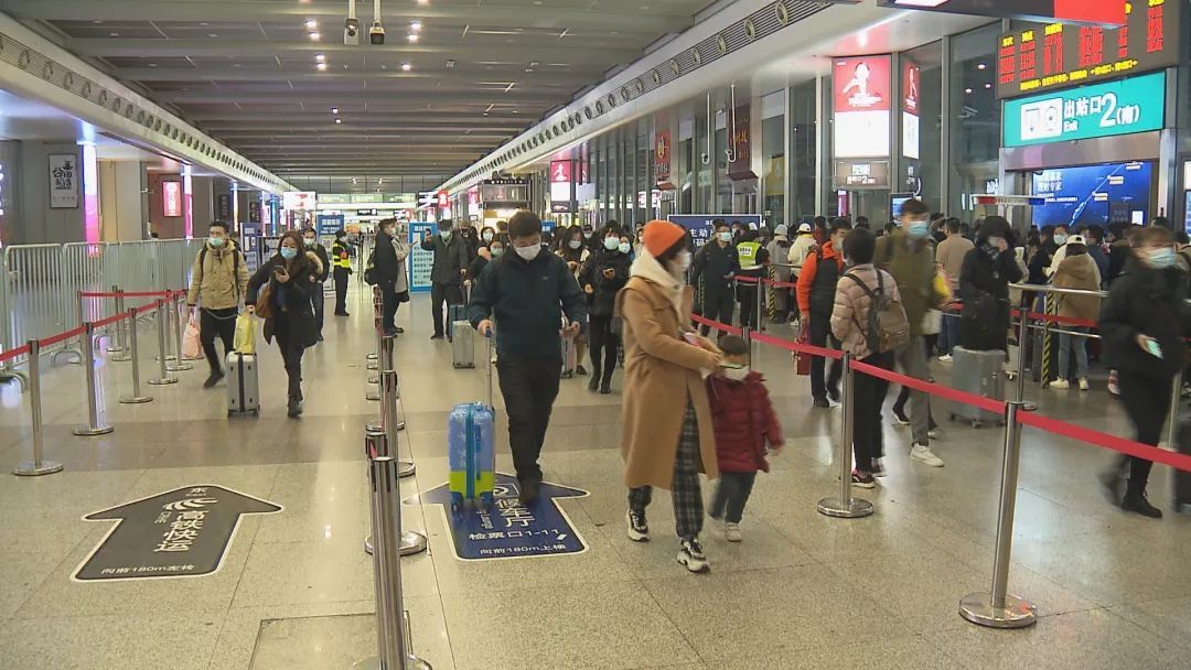 据了解,17日上午,铁路虹桥火车站短途到达旅客居多,下午及夜间则迎来长途大客流。旅客们反映今年是疫情常态化后的第一个春节,也都积极响应国家的防疫号召,做好防护措施,过了一个开心年。