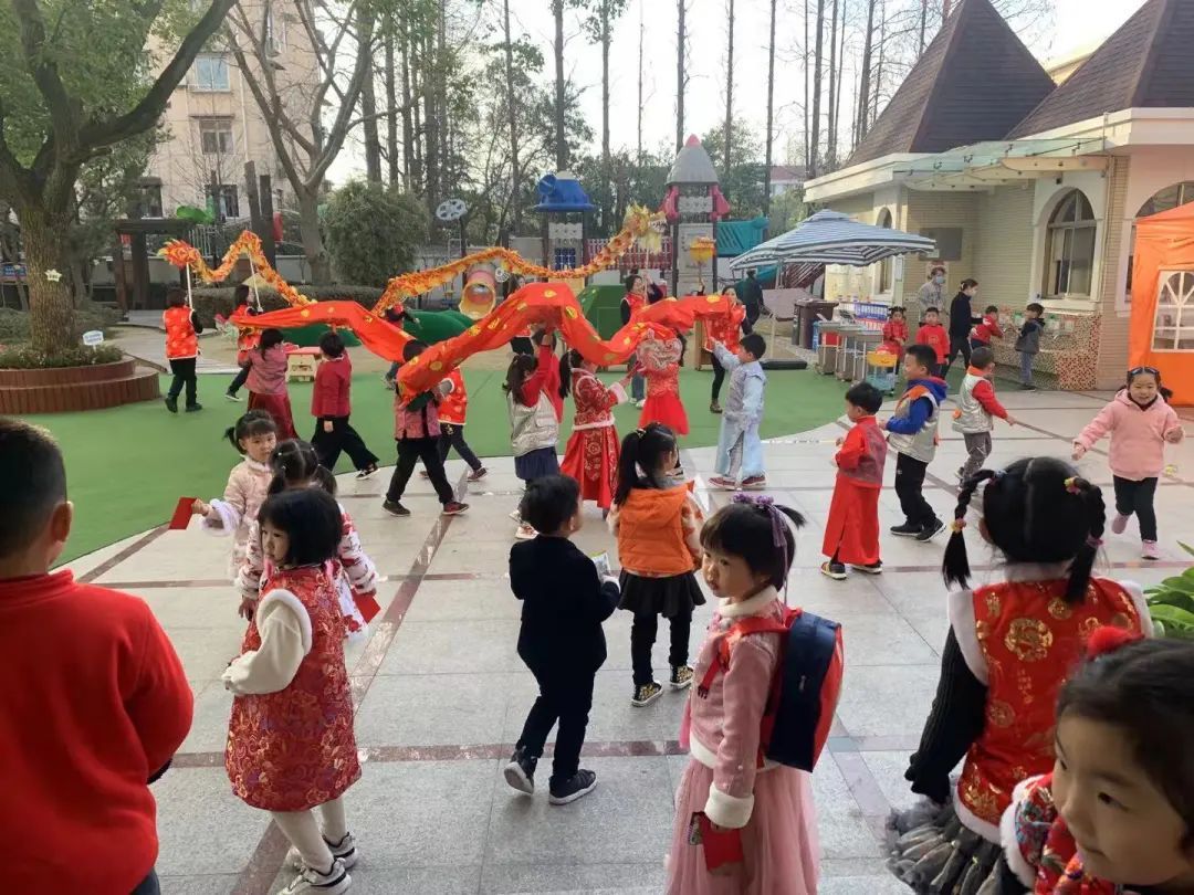 小铃铛还没来得及打开红包,就被园内更大的惊喜吸引了:一条条红色的长龙在小伙伴们的手中起舞。在老师的指导下,长龙左扑右闪,十分威武。