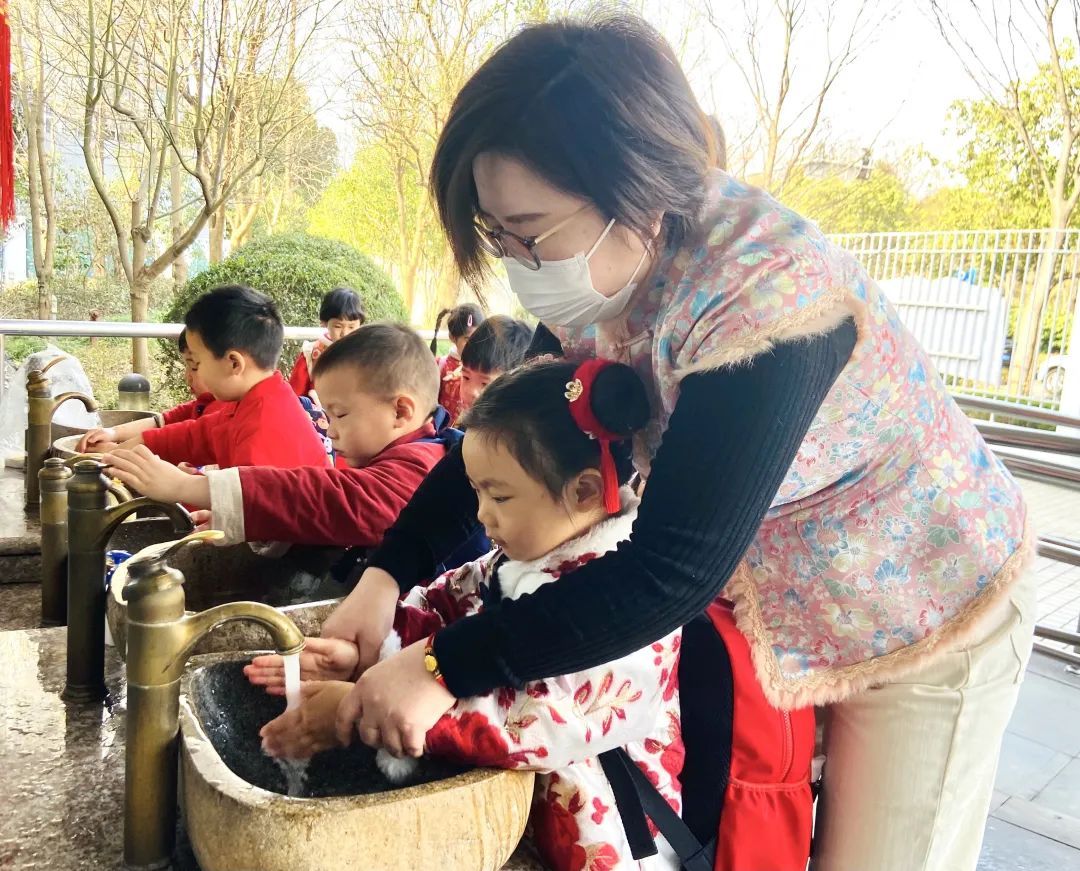本溪路幼儿园(政悦分园)的老师们,一早就穿上唐装,迎接过完新年的宝宝们。