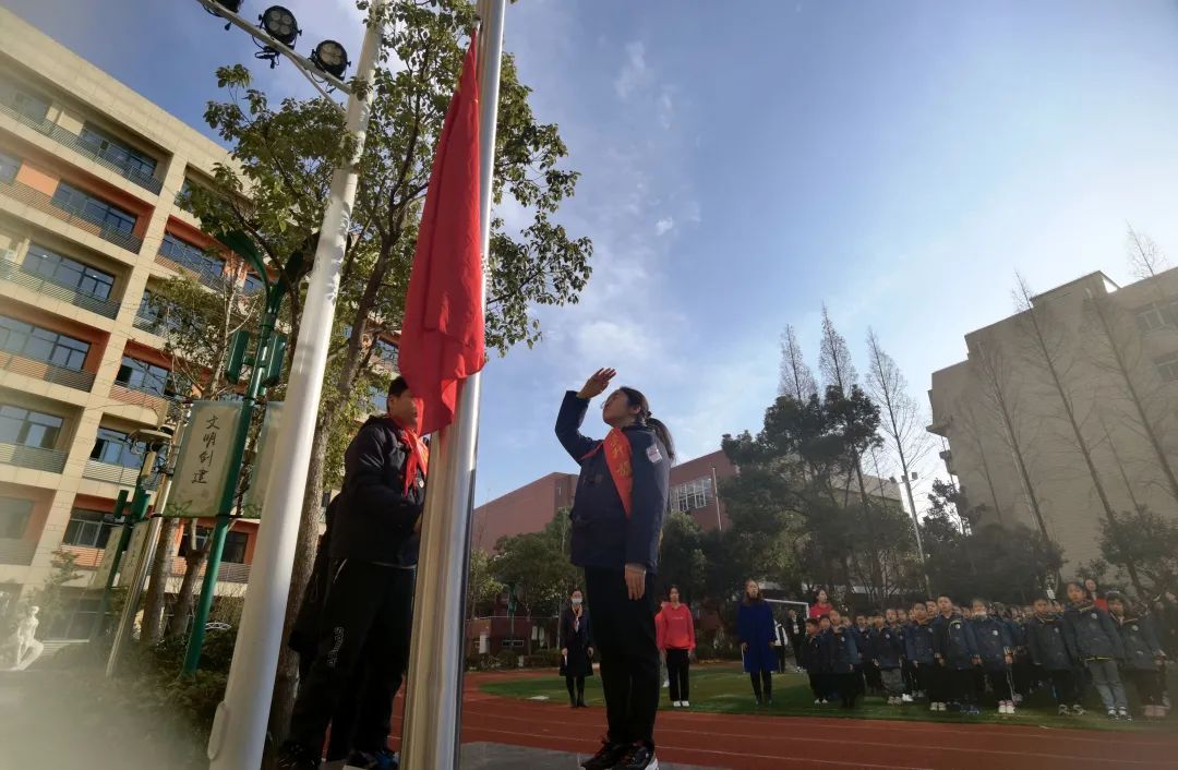 上午8点半,在暖暖的阳光里,五星红旗缓缓升起。全校师生肃立,学生们高声唱响国歌。
