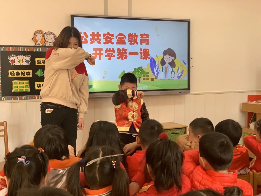 此外,还有描摹“牛”字、红花献给解放军叔叔、我和牛牛合个影等精彩活动。同时,开启新学期,安全教育很重要。老师们带领宝宝们复习交通常识,消防常识等,大家争做“安全小达人”。
