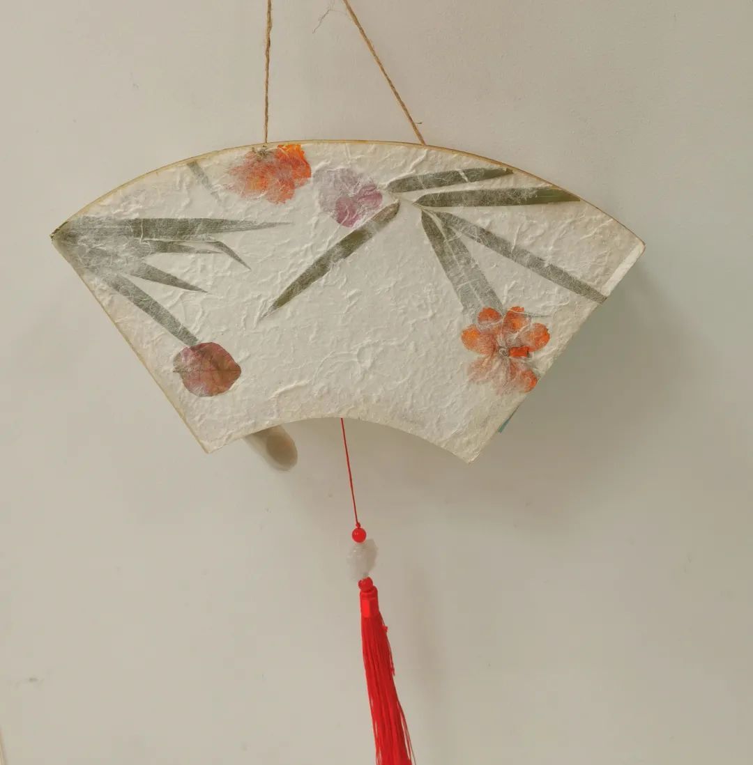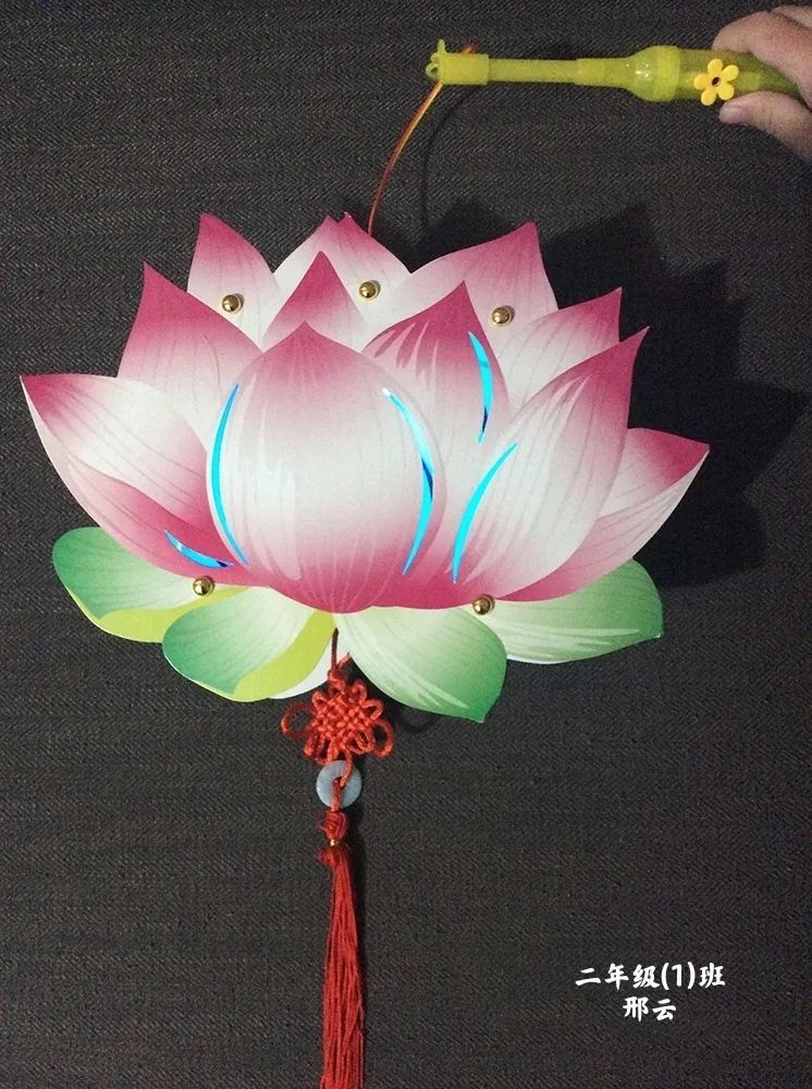 还有的小朋友用纸折剪成相同宽度的长条做灯笼,用胶水固定,并且逐步贴好,最后用透明胶贴在一起做成顶部。用红绳串起来,流苏做装饰。荷花寓意着吉祥如意,繁荣昌盛,美好期盼;一盏荷花形状的灯笼象征对生活的美好祝福。