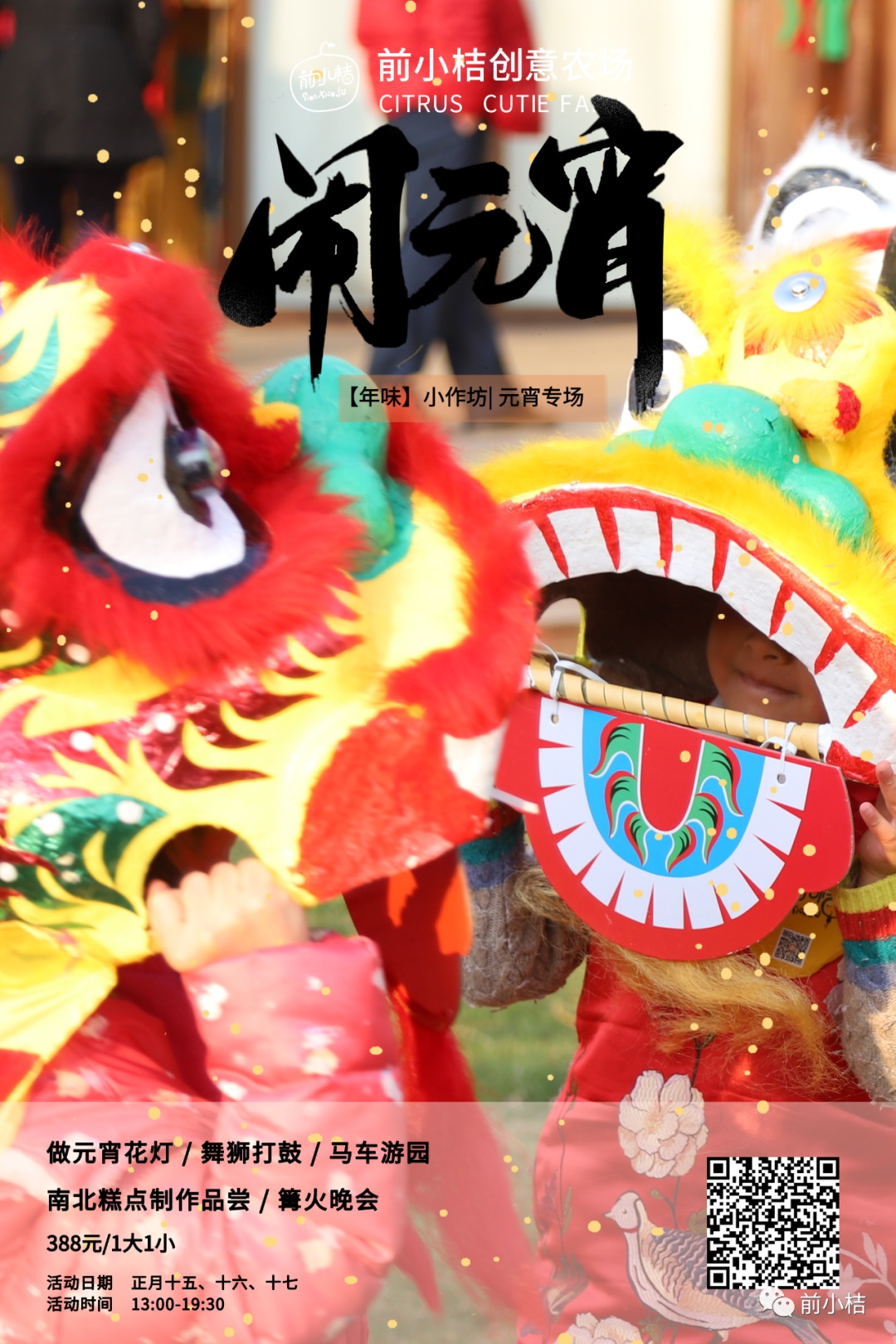 正月第一次月圆, “年味小作坊” 升级玩:做花灯、舞狮打鼓、马车游园,制作品尝汤圆、饺子等南北糕点,夜晚提着花灯参加篝火晚会!价格、退改详情等见商城,填写过年味游园问卷的亲们可以使用50元抵扣券(购买时请留言)