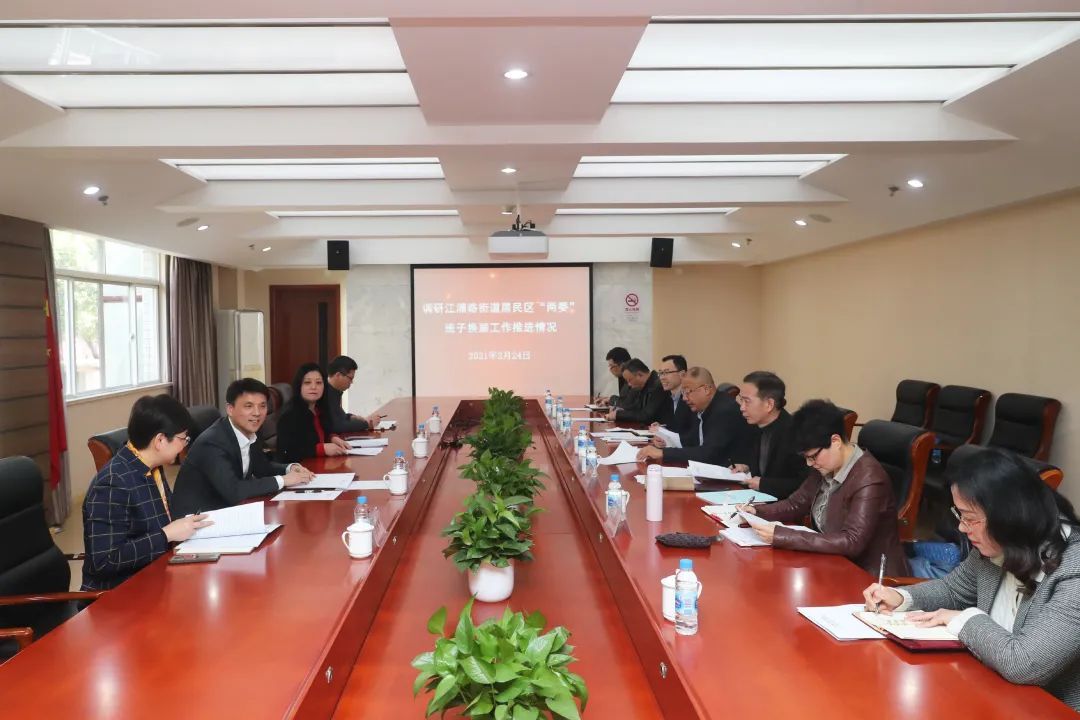 今天(2月24日)下午,区委书记谢坚钢赴江浦路街道,认真听取了江浦路街道党工委、办事处关于居民区“两委”换届工作推进情况的汇报,并指出,街道前期工作准备充分,当前工作扎实有效,后续工作安排有序。居民区“两委”换届工作使命光荣,责任重大,要努力换出居民区“两委”干部的新风采,换出基层社会治理的新气象,换出“四高城区”建设的新局面,以优异成绩庆祝建党100周年。