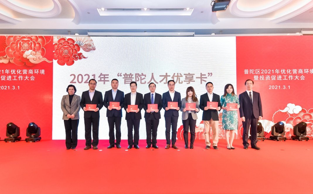 会上,观看了短片《蝶变•前行》,全面回顾了普陀2020年在优化营商环境、抓好投资促进方面取得的亮眼成绩。同时发布了“2020年度普陀区经济贡献重点企业”“2020年度普陀区优秀招商大使”“2020年度普陀区新增亿元楼”等先进企业榜单,并向20位获得“2020年度普陀区服务企业‘金牌店小二’”,以及8位获得“2021年‘普陀人才优享卡’”的先进个人颁发了奖牌和证书。360集团代表新引进企业,近铁城市广场运营方代表亿元楼企业,曹杨新村街道代表服务企业“金牌店小二”分别作了交流发言。