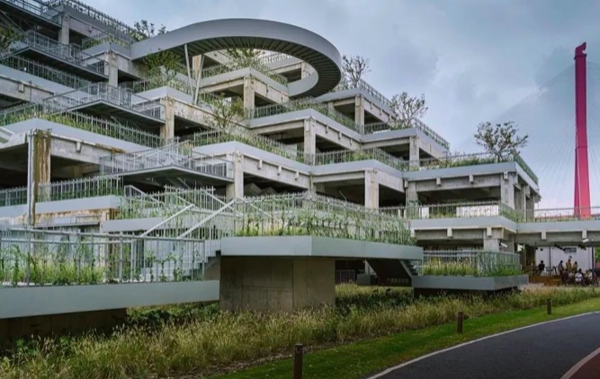 绿之丘是杨浦滨江超有人气的地标,由烟草仓库改造,工业水泥风、绿植、层层叠叠的旋转楼梯,仿佛就是一个奇幻山丘~