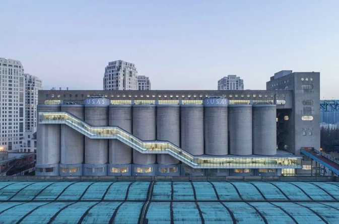 行走在浦东滨江,很难会忽略8万吨筒仓的巨型圆柱建筑,站在筒仓下会觉得人特别渺小。这里曾是亚洲最大的粮仓,建筑右侧10个48米高的巨大筒仓上,外挂着一条长长的玻璃楼梯,将这个建筑都变成了一件艺术品。