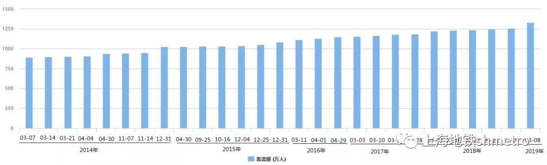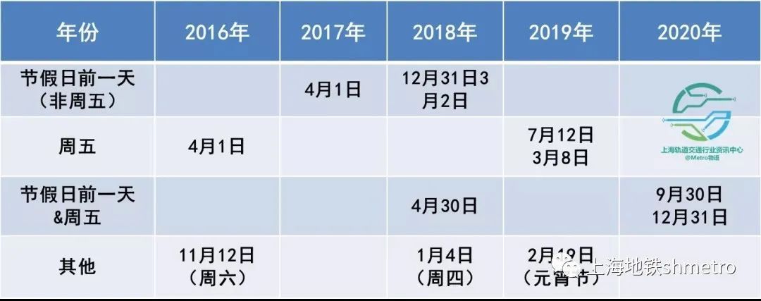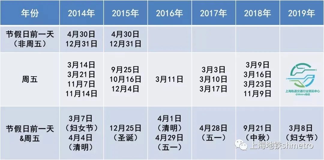 这是上海地铁历年来出现客流新高的日期: