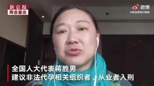 近日,全国人大代表、作家蒋胜男,在两会即将到来之际撰写了多项建议,包括便关于明确非法代孕相关组织者、从业者入刑的建议。
