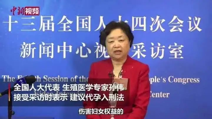 4日,全国人大代表、生殖医学专家孙伟接受采访时亦表示,代孕技术有悖伦理、伤害妇女权益,建议代孕入刑。