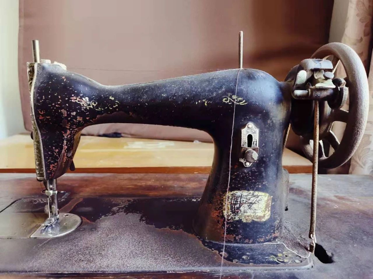 这是台“标准牌”缝纫机,木质的缝纫机台已有些斑驳,深色的桌台随着做工时的摩擦,靠近身体的一边已露出了“底色”。“咔哒咔哒”的声音里掺杂了些沙哑,行走的针脚也多了些迟钝,鲜亮的缝纫机身也在时间的流逝中褪去了“外衣”,机身上“标准牌”三个字变得模糊,看不出字样。但就是这样一台缝纫机,却见证了三代人的成长,为我们的生活增添了很多乐趣。