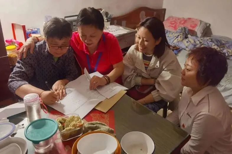 应阿姨开心地拉着居委会干部的手说:“我一个人正对着家中需要整理的物品发愁呢,女儿住蛮远又生病,你们来了正解了我的燃眉之急!”