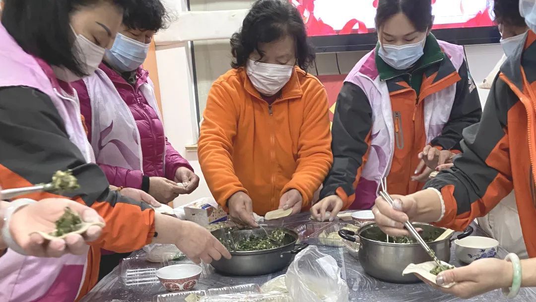 北岭园居民区妇联组织“老伙伴”志愿者为结对的独居老人包馄饨,把温暖带给结对的老人及困难妇女,向她们表达真挚的问候。
