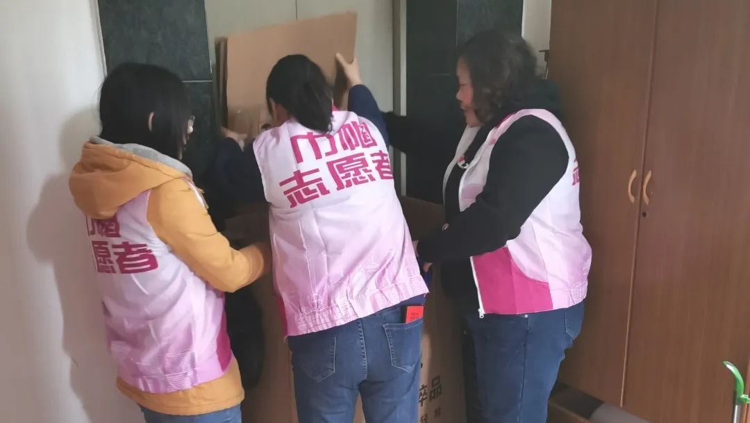 源园妇联走进一村82号4室独居老人应阿姨家中,由于是最后一幢的外搬,时间紧急,大家一起协助打包整理。