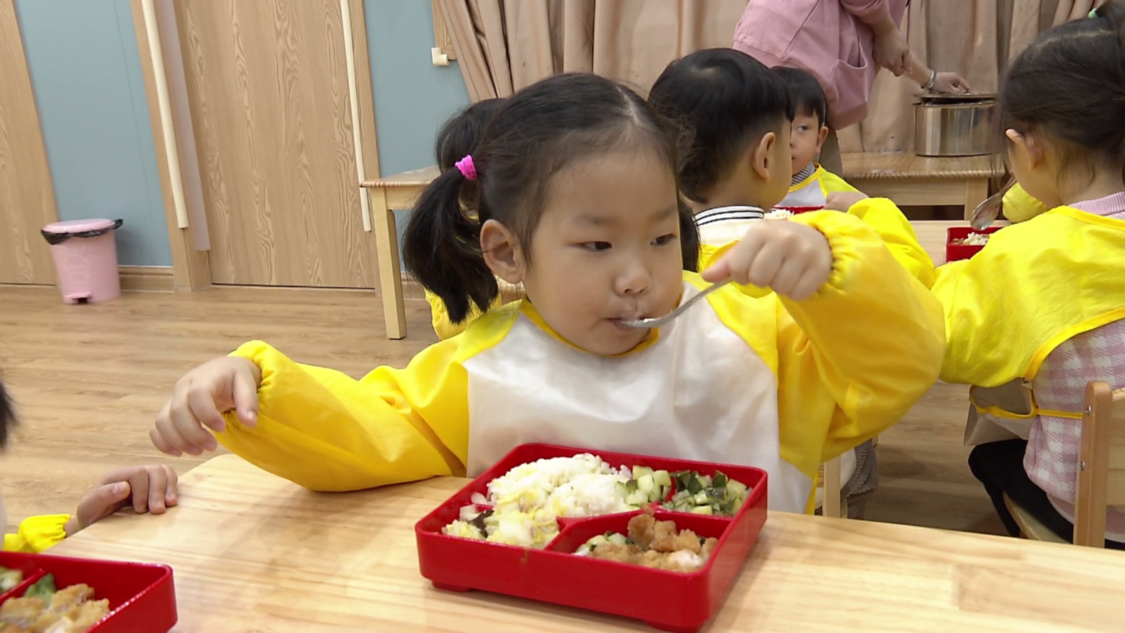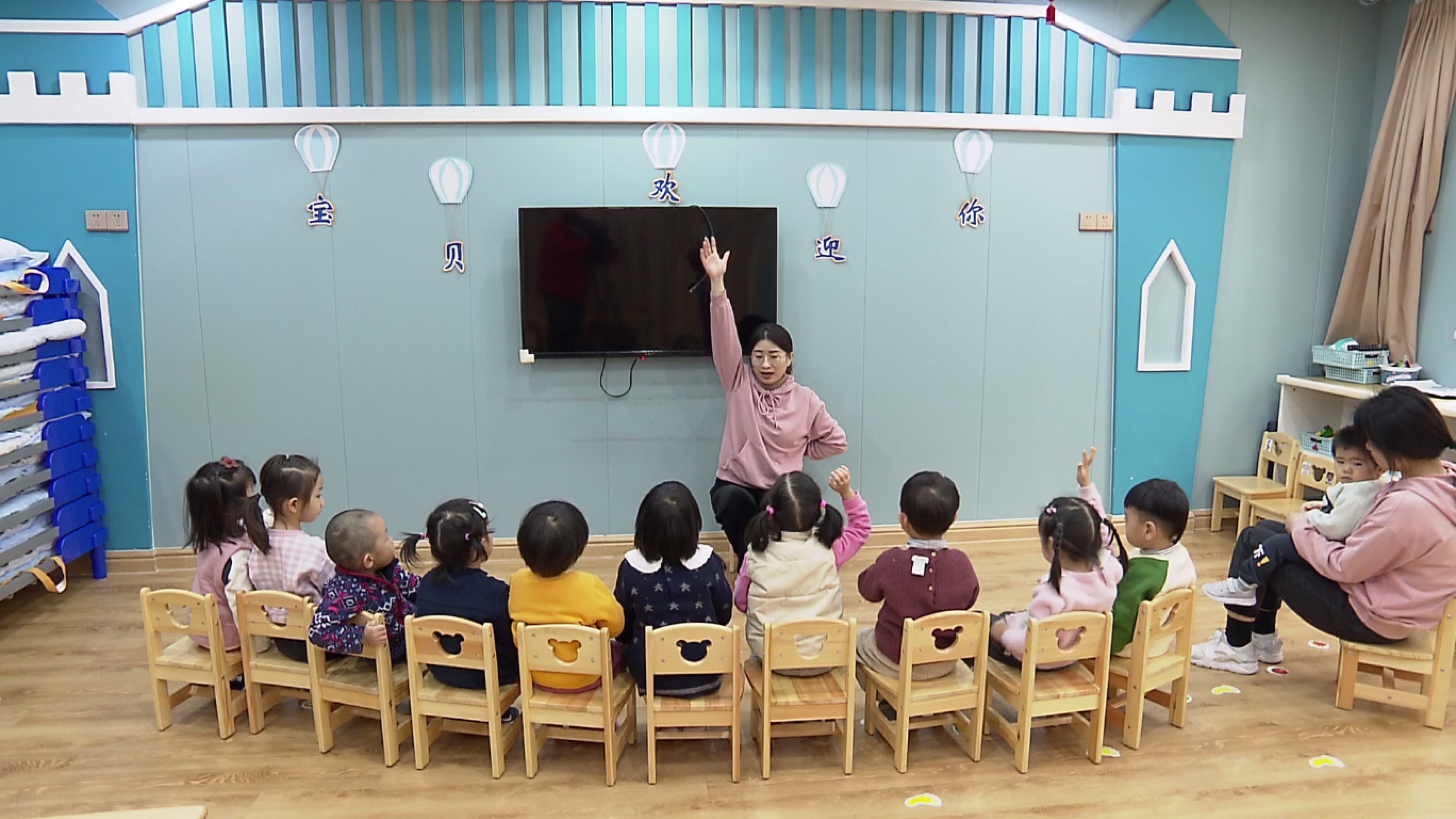 顾秀明是一位有着30多年公办幼儿园工作经验的老“幼教人”。她告诉记者,托育园和幼儿园在教养重点上各有侧重。小福熊在课程设计上严格按照教育部门的相关要求,注重对小年龄段孩子自理能力和生活习惯的培养,支持幼儿各项能力的发展,“相较于幼儿园,托育园更加注重养育工作,孩子在园内的学习以养为主、教为辅,慢慢引导他们‘解放’自己的眼睛、嘴巴和手,让他们学会自己的事情自己做。”顾秀明还告诉记者,从去年9月份开学到现在,这些孩子们在老师的教养下,从不适应到习惯,如今已经能够很安静地听老师上课,很好地与老师互动。学会自己穿鞋、穿衣服、吃饭,变得讲礼貌,发生在孩子们身上的这些变化让家长们看在眼里、喜在心中,同时也对托育园的专业托育服务给出了大大的“赞”。