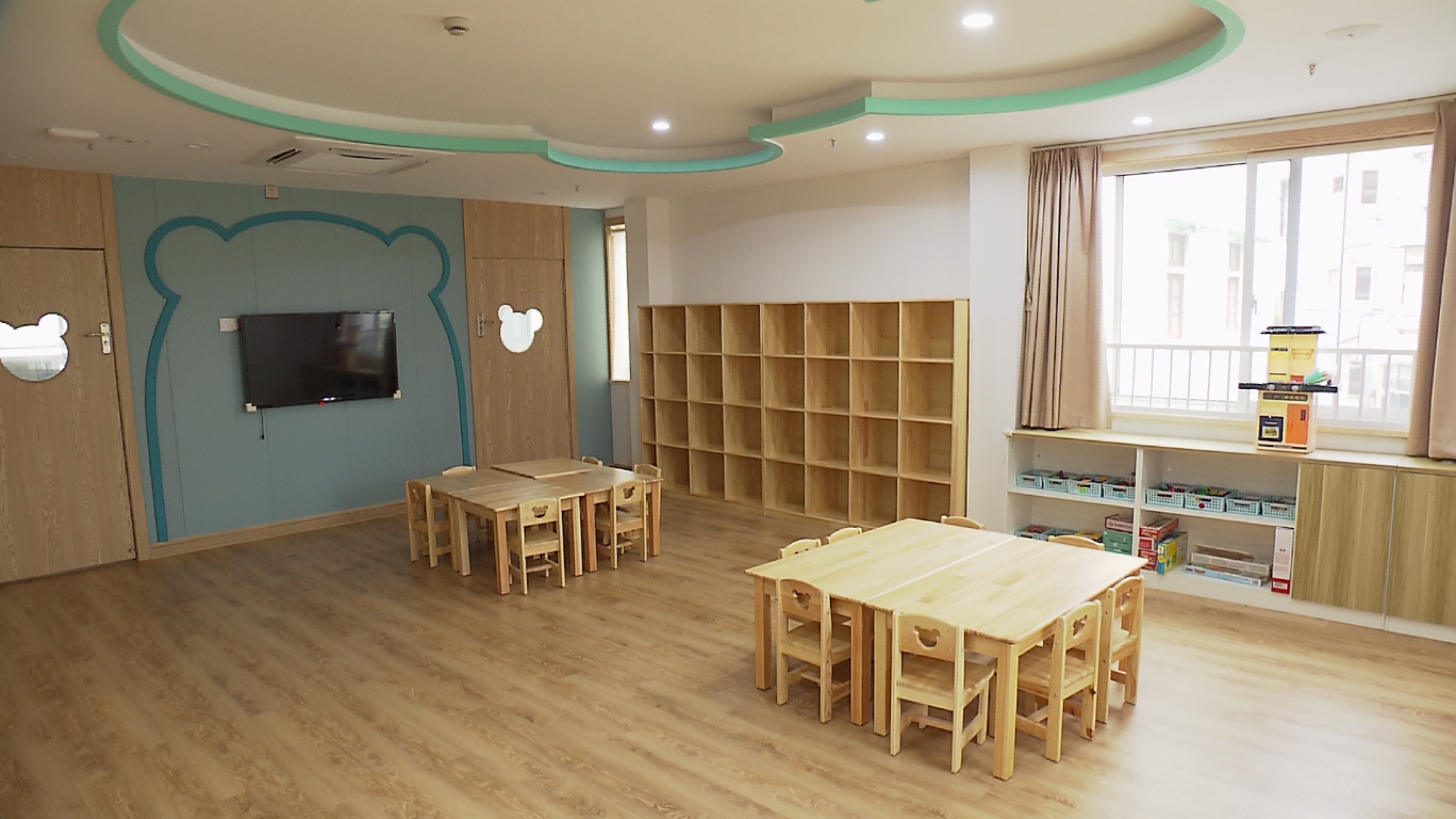 考虑到托育园内的孩子年龄幼小,托育园将安全放在最重要的位置。一方面在教室布置上格外注重安全,为孩子挑选玩具时特别挑选材质柔软的,严格落实各项疫情防控要求,加强园内各项日常消毒工作,每个孩子入园都需要测体温、洗手、换鞋、然后才能进入班级。另一方面扎实做好各项安全防护工作。不论是在课堂内上课,还是在室外运动,老师和保育员必须同时进班级,一位老师上课,一位老师机动站位,发现哪里不安全,随时到位,保育员则负责孩子的生活。每位老师的眼睛都始终关注孩子的一举一动,确保不会有一位孩子被“遗漏”在老师的身后。