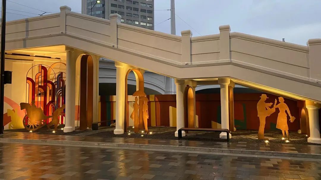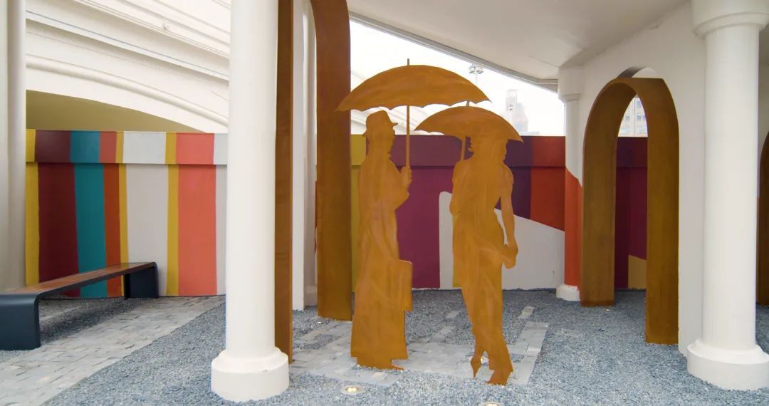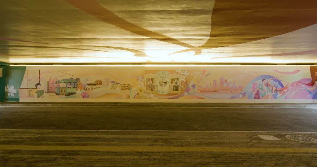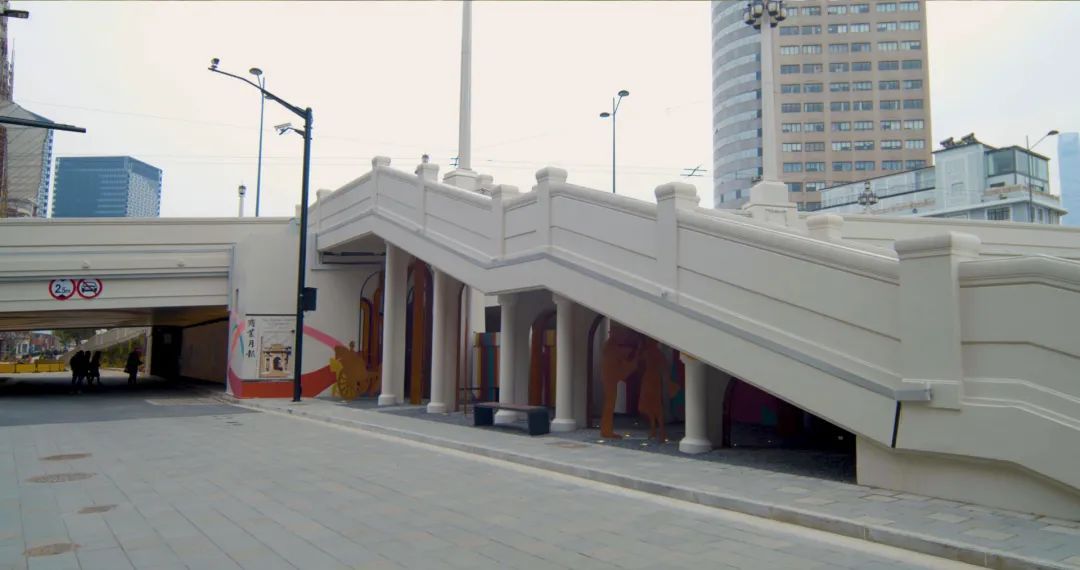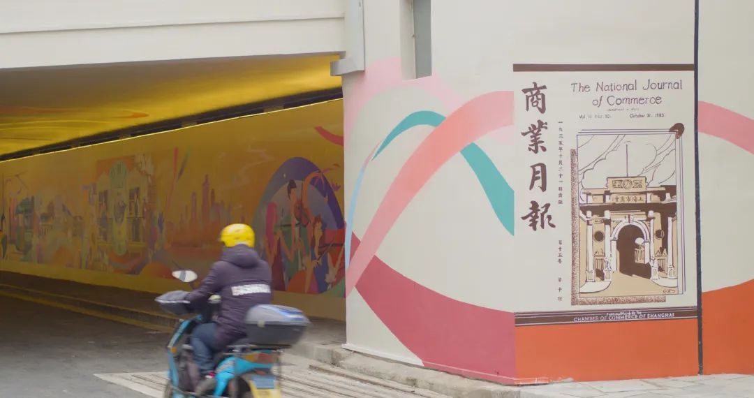 以“静安穿梭,苏河畅想”为主题,采用双面连环画摄影作品亮化美化河南路桥下空间,再现1935年《商业月报》封面总商会原貌。