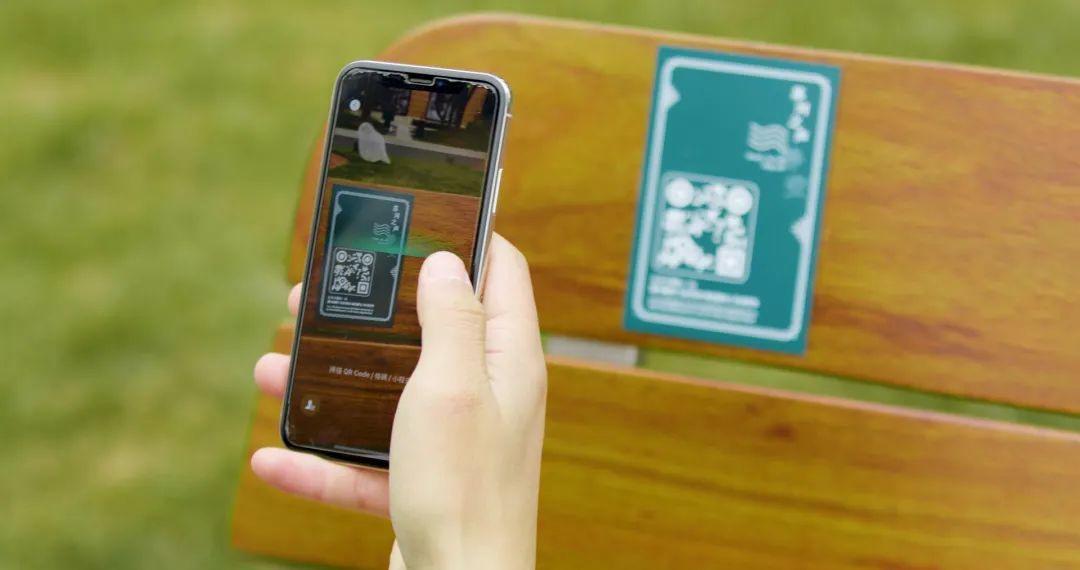 漫步其间,在桌椅上还能有新的发现。设计团队与新民晚报合作,邀约社会大众与河畔居民,创作了一批诗歌来展现苏州河静安段的历史人文与改造新貌。入选“苏河之页”(新民晚报的电子书)的诗歌,又再邀请残障人士与朗诵艺术家共同完成配乐诗朗诵,二维码链接镌刻在座椅上,游人轻扫,即可观看和聆听电子书。