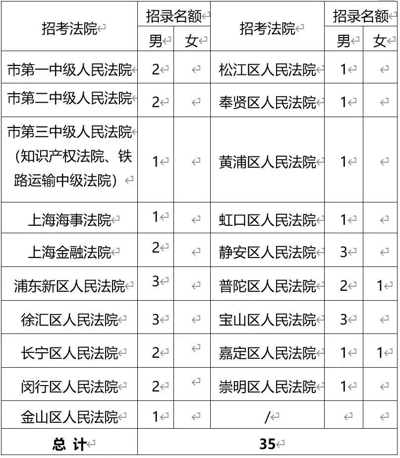 2021年,上海公安学院定向招考法院系统司法警察学员35名,(其中女性2名)。上海市法院系统各单位录用计划数如下: