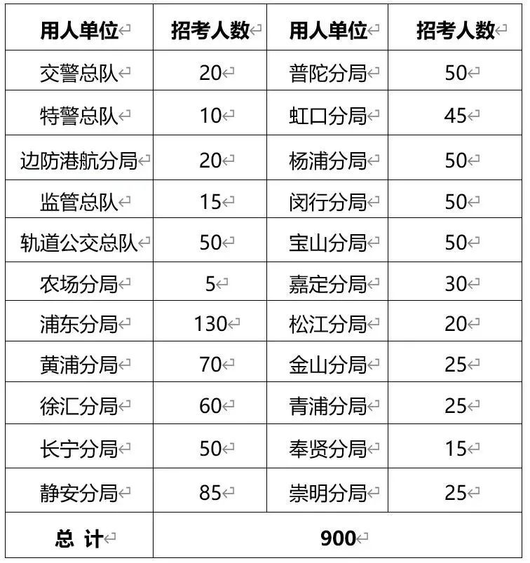 2021年,上海公安学院计划招考公安系统人民警察学员900名(其中女性90名)。上海市公安局及所属各单位招考人数如下:
