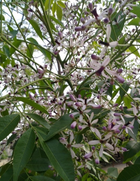 落叶乔木,高达10余米。楝树花并不招人眼,但花期很长,有的能持续开放一个多月。花朵很小,花瓣白中透紫,十分好看。