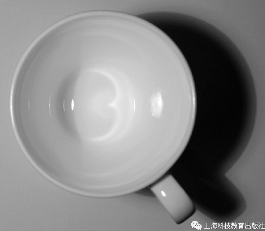 当光线斜射到截锥体形状的咖啡杯时,你可以看到一条心脏线;
