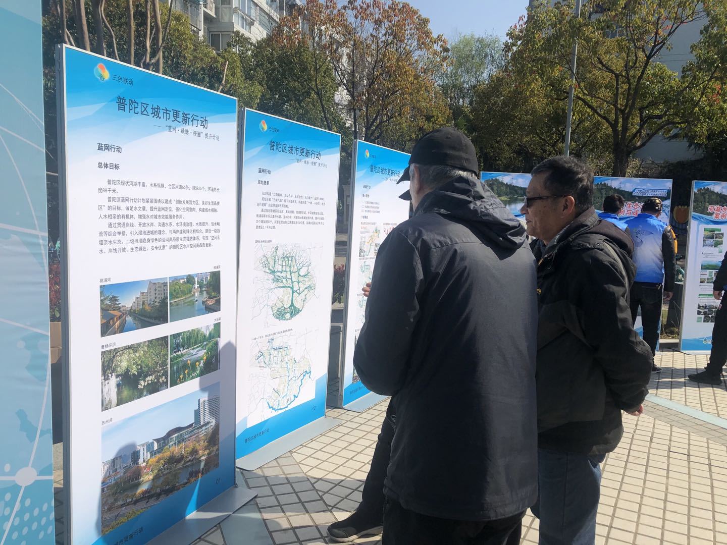 一早,苏州河畔立起了多块蓝色的展板,吸引了不少市民围观,展板通过版画等多种形式,从不同部门角度对“世界水日”“中国水周”进行宣传,各部门工作人员在现场进行配合讲解。区水务局重点介绍了普陀区“十四五”期间水资源提升计划、清洁生态小流域行动方案等。区文明办、区发改委、区教育局、区商务委通过介绍节水小区、节水型学校、节能减排、塑料污染治理等内容,共同宣传普陀区节水行动方案。区生态环境局介绍了水资源利用等环保知识。区河道所重点介绍了河道水生态相关技术、水土保持等水环境科普知识。区市政中心介绍了区雨污混接、排水发展规划等相关知识。长征镇河长办介绍了辖区内河道现状及日常养护管理措施。元代水闸馆介绍了水闸相关知识和元代水闸特点等。