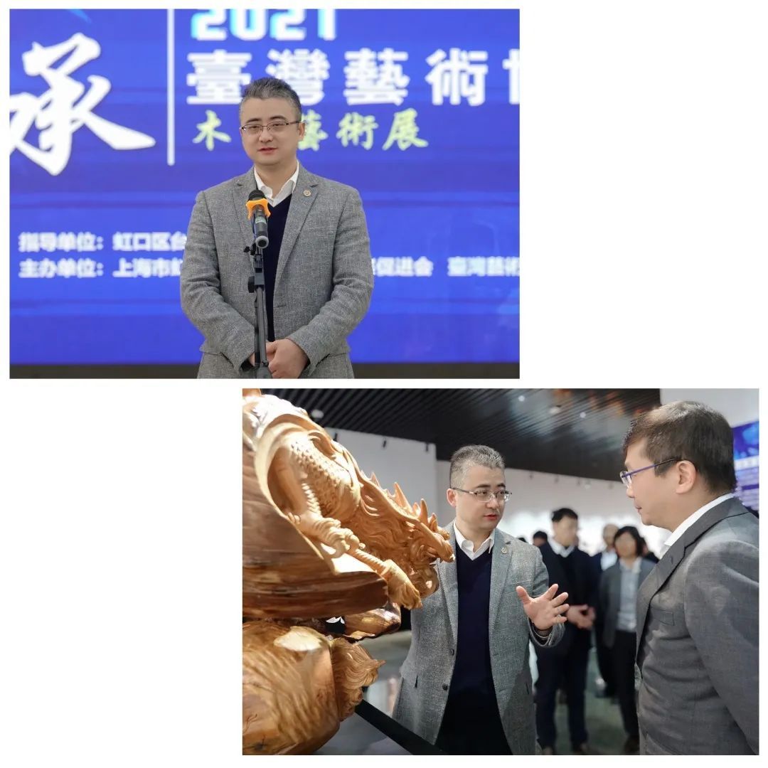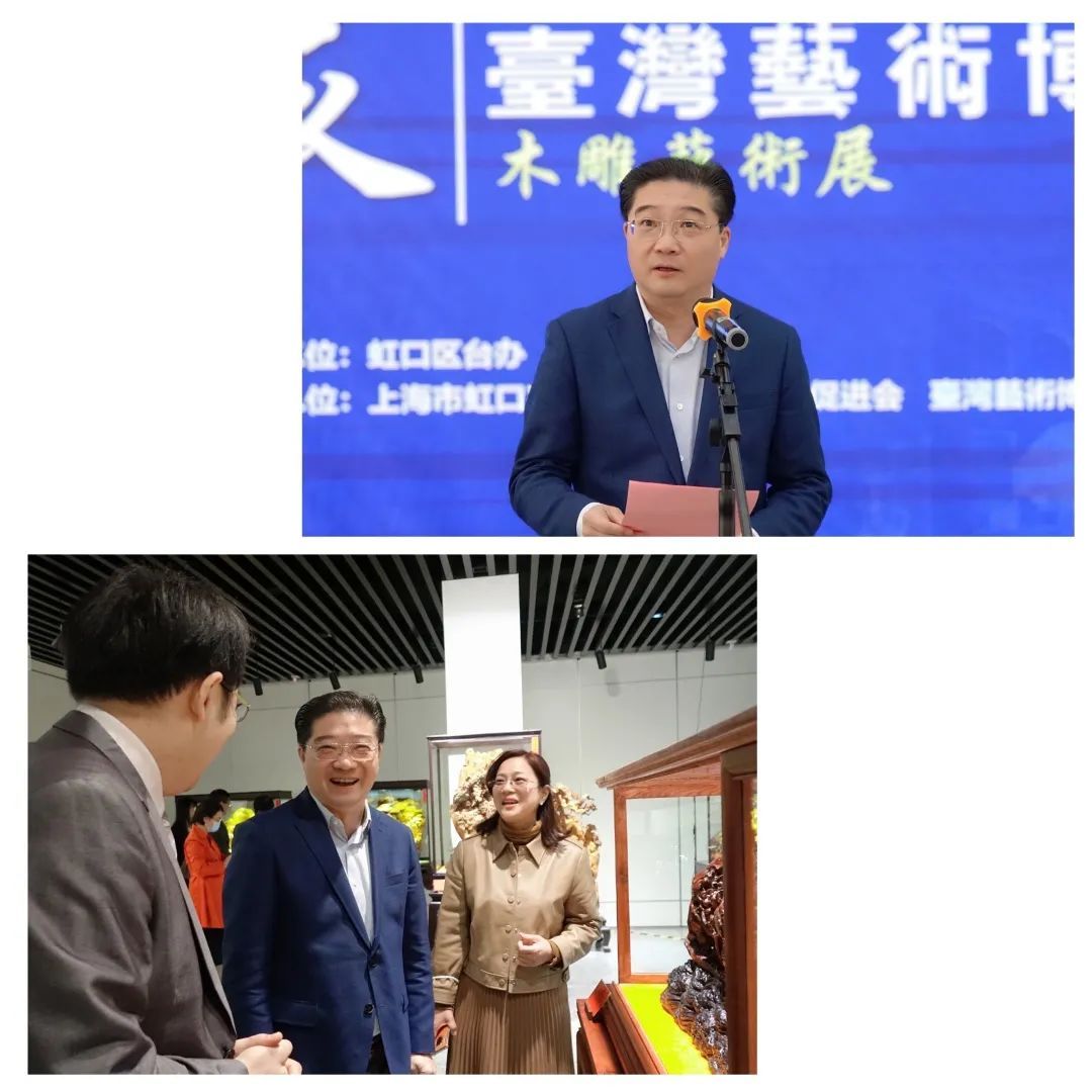 3月23日上午,由台湾艺术博物馆和虹口区文化创意产业发展促进会共同主办的“传承”台湾艺术博物馆艺术木雕展在虹口朱屺瞻艺术馆开幕。上海市台办副主任李骁东、虹口区副区长郑宏、区台办、区文旅局等单位领导与市台协常务副会长杨明潭、台湾艺术博物馆馆长吴煜正等台商台胞代表30余人出席了开幕仪式。