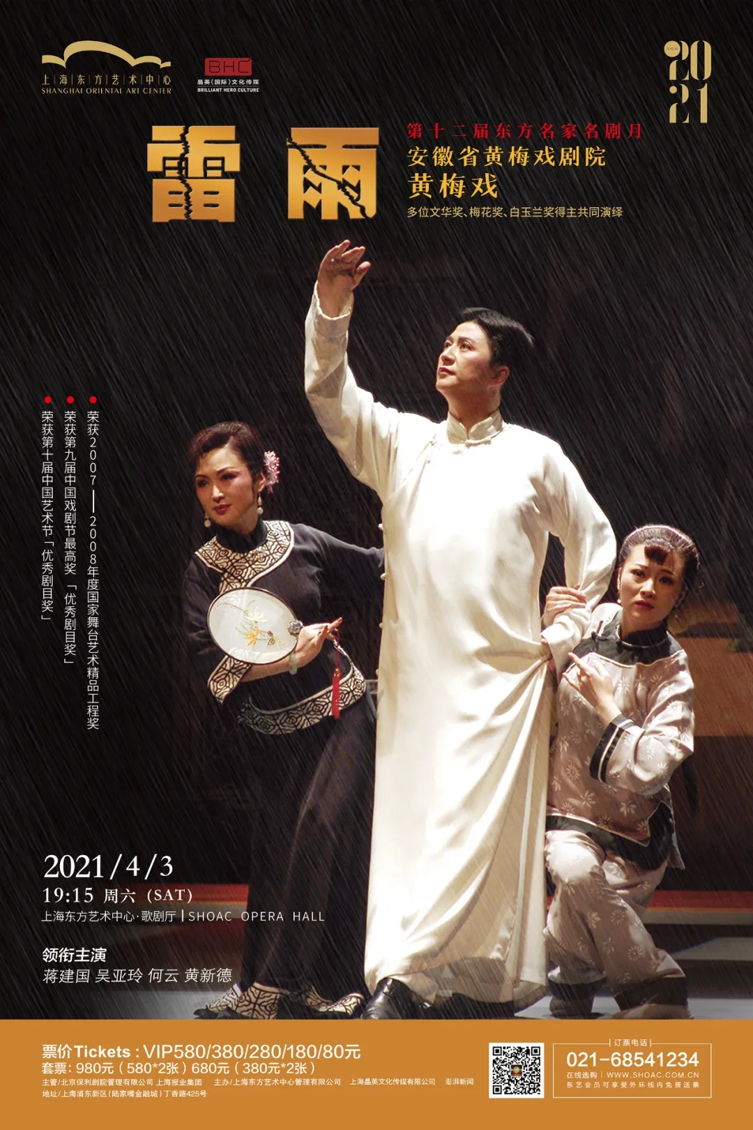 改编自戏剧大师曹禺同名原著、荣获“文华优秀剧目奖”、由安徽省黄梅戏剧院院长蒋建国亲自领衔,携国家一级演员、“梅花奖”得主吴亚玲等优秀演员共同演绎的黄梅戏《雷雨》。