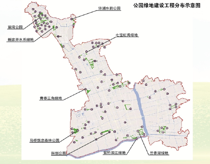 “十四五”期间,闵行将全力推进闵行科创公园、马桥旗忠森林公园、前湾公园、许浦水韵公园、新家弄水系绿地、青春三角绿地、七宝虹秀绿地和大居结构绿地等300公顷公园绿地建设,新增林地4500亩。