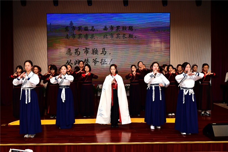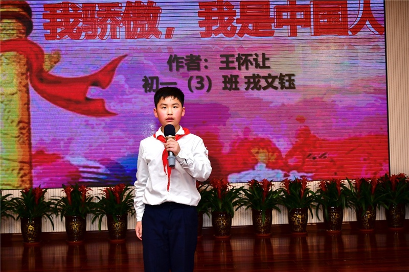 最后,初一年级同学压轴。女同学们以一曲《木兰诗》,将巾帼英雄花木兰的传奇娓娓道来。初一3班戎文钰同学的《我骄傲,我是中国人》唱出了他的心声。初一年级男生慷慨激昂的《少年中国说》,唱响了少年的最强音,“少年智则国智,少年强则国强”,为这次的诗歌朗诵会画上了圆满的句号。