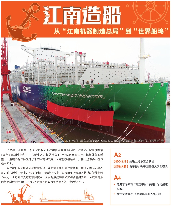 今年是建党100周年,也是“十四五”的开局之年。江南造船厂作为中国船舶业的“老牌劲旅”,未来也将顺应整个技术发展的潮流,服务国家战略。未来的江南造船集团将以5g智能制造为助力,引进外国先进的软件技术,全面建成数字实验室和智能实验室,从数字造船向智能制造快步前进。“江南在技术方面始终走在全国的前列。”江南造船(集团)有限公司党委工作部部长蔡勤宏这样对记者说道。