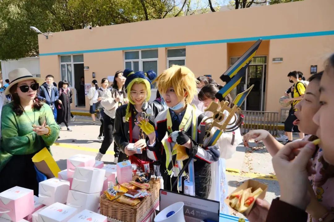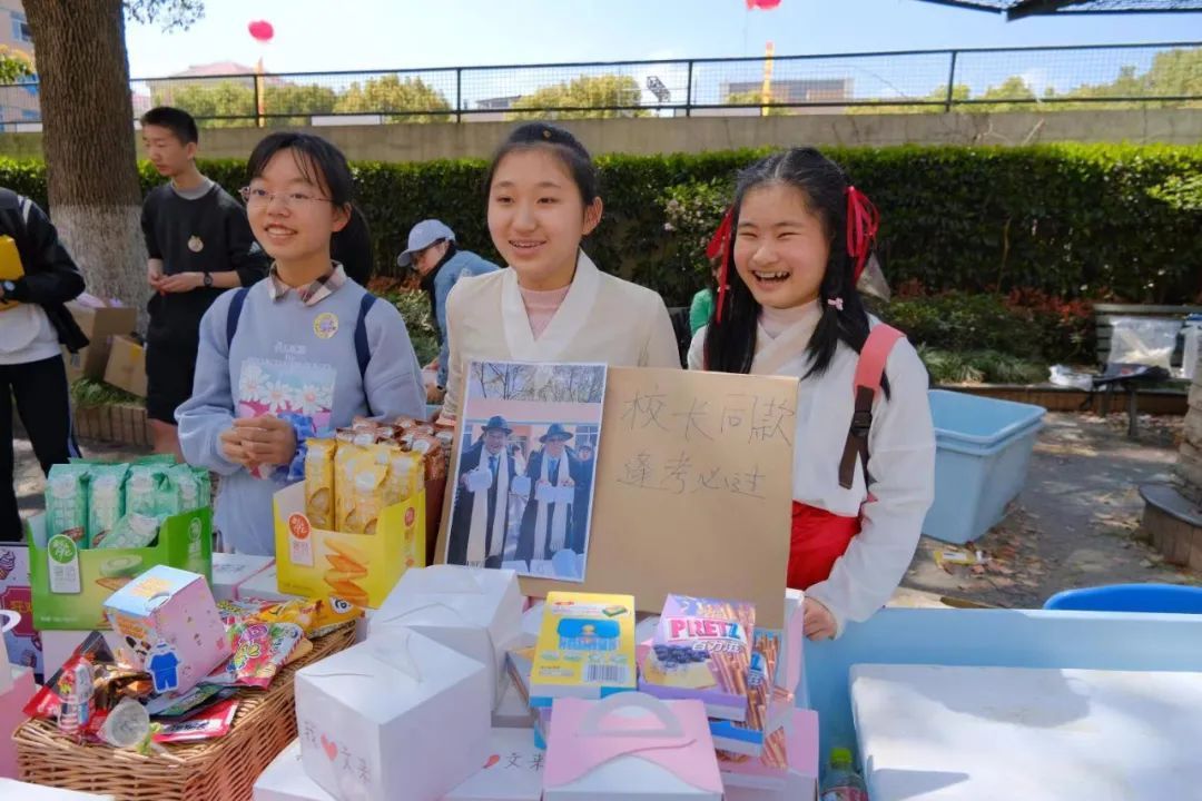 白菜拉拉袋、零食盲盒、带有校长签名的t恤衫和帆布袋......今年的义卖嘉年华活动依然热闹非凡,学生们准备了各式各样的东西,以义卖的形式兜售给需要的同学。为了让自己的东西更走俏,学生们也想出了各种各样的办法。抽盲盒是近年来比较热门的一种的娱乐方式,八(10)班的学生们把一些受学生欢迎的零食装进了盲盒里,同样的10元钱,一个盲盒的销售量远高于普通的售卖;他们还把一些日用品做成了带有文来元素的纪念品,如印有“文来”标识的钥匙扣,文来款的棒棒糖等同样受到学生的喜欢。如果说盲盒是“网红”,那么,带有校长签名的t恤衫和帆布袋则直接买断了货。九(10)班的杨一告诉记者,受到以前师兄师姐举办狂欢节的启发,他想要定制印有校长签名的t恤衫和帆布袋。“早在活动开始前,我就跟校长表达了想要签名的想法,他很支持我们。“让他意想不到的是,这些t恤衫和帆布袋的销售异常火爆,不一会儿就卖断了货。“我们马上就要参加中考了,希望我们能够如校长所愿:中考必胜!”杨一告诉记者,之后他们会把义卖所得的善款统一交给学校,为需要帮助的人们献一份爱心。