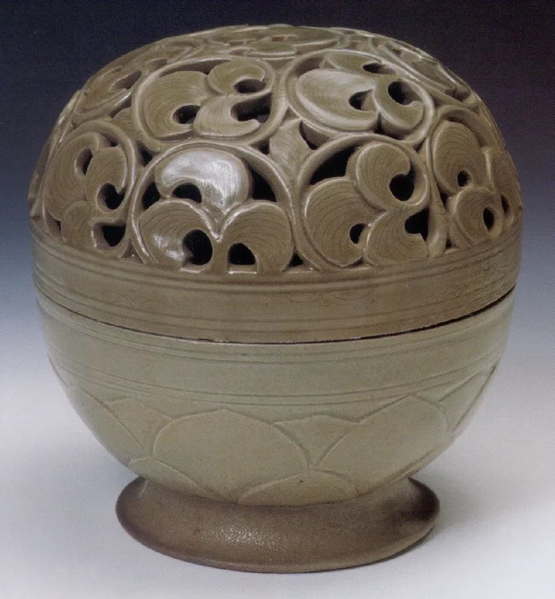 北宋早期 越窑青釉刻花卷草纹熏炉