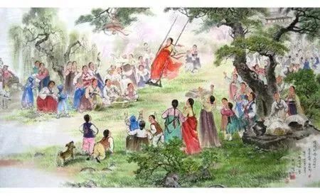 除了踏青、郊游,清明节还有放风筝、打马球、拔河、斗鸡、蹴鞠等十多种趣味体育民俗活动。蹴鞠就是踢球,这是古代清明节时人们喜爱的一种游戏;荡秋千在南北朝时就已盛行。据《荆楚岁时记》记载:“春时悬长绳于高木,士女衣彩服坐于其上而推引之,名曰打秋千。”唐代荡秋千已经是很普遍的游戏,并且成为清明节习俗的重要内容。唐代诗人王维的《寒食城东即事》中有“蹴鞠屡过飞鸟上,秋千竟出垂杨里”的句子,也说明清明节民间体育活动深入人心。