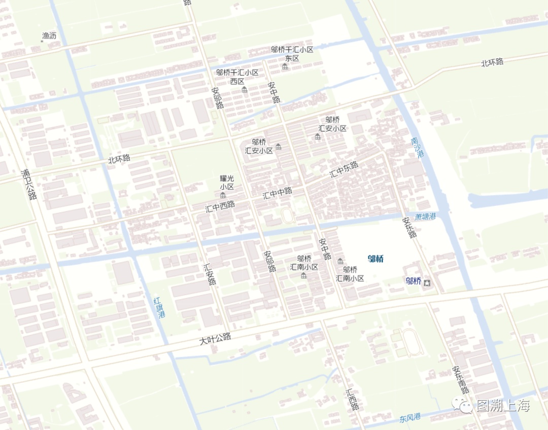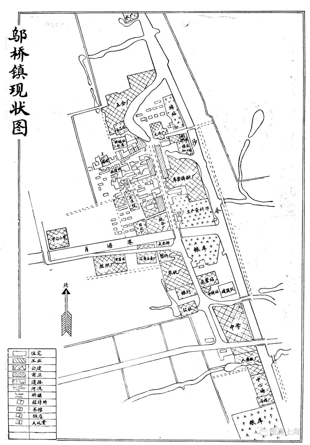 1949年后,邬桥集镇街道呈窄长条形,南北长1.5千米,东西宽150米;镇中原有的老河北街和新建的南北街,以商业为主,供销社、合作商店、工业公司、副商公司都开设了服务门市部。乡政府大楼,公社大楼,中学、小学教学大楼等均建于新街。镇南、镇北以工业为主,镇西以住宅区为主,沙冈河傍东流南,萧邬公路(今大叶公路)居镇南,西通松江区叶榭镇。