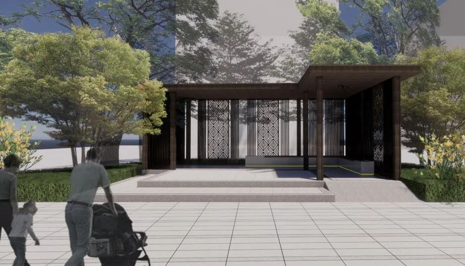 将原有简陋的廊架重新改造为富有浓郁中国风的休闲活动场地,为居民提供惬意的交流空间。