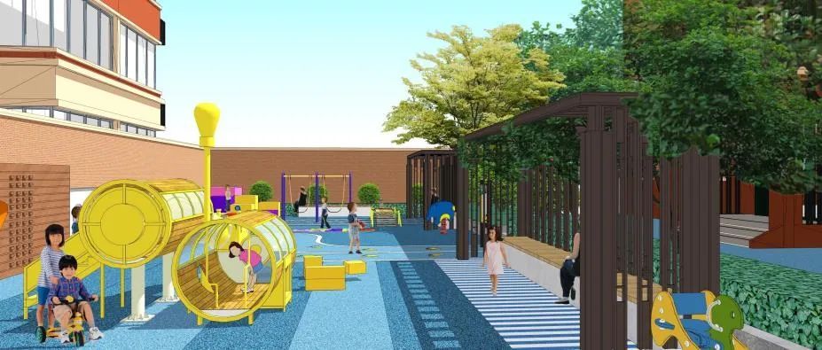 打造约200平米的儿童活动场地,增添色彩认知跳格子、储物柜文化墙、高低组合攀爬梯等适合0-12岁不同年龄段的儿童活动器材,并设置家长看护区域。