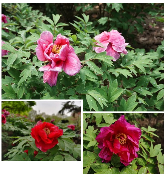 4月8日上午,尽管申城还下着淅沥沥的小雨,来中山公园赏牡丹的市民依旧热情不减。雨后初晴,叶片上的露珠清晰可见,朵朵牡丹在阳光中绽放勃勃生机。