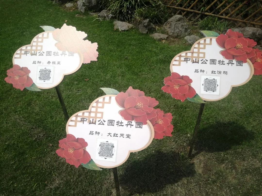 “绿艳闲且静,红衣浅复深。”“宁宁”在现场看到,‘紫红殿’‘花竞’‘岛大臣’‘太阳’‘时雨云’‘海黄’等各色品种的牡丹争相绽放、交相辉映。牡丹园中还设置了多块指示牌,市民只需扫码即可了解具体的品种信息。