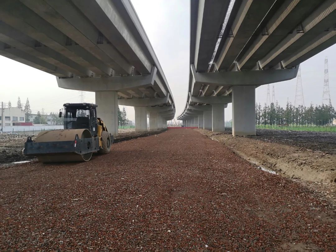 工程施工全过程秉持“低影响”施工理念,沿线施工便道及地面辅路路基填料均采用经破碎、筛分的建筑旧料,吸收利用了周边大量拆迁废料,避免了土方运输对周边社会交通的影响。