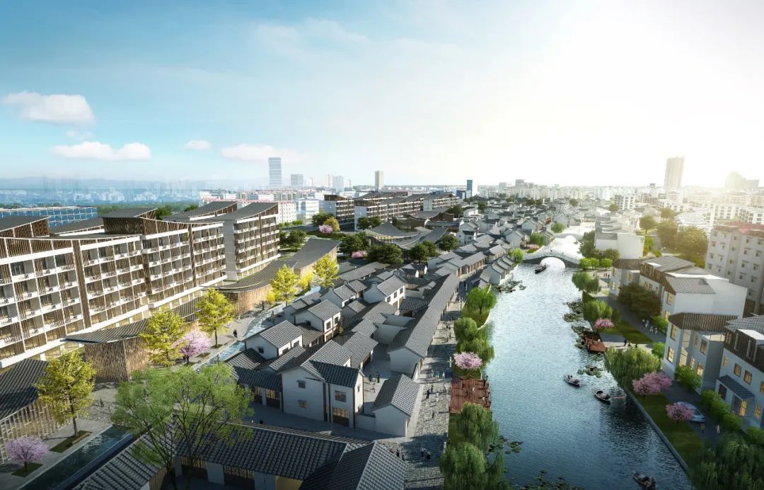 规划尊重并强化老城“环加十字”整体格局,编织街巷网络,营造文化节点,重塑地标系统。建筑风貌基于嘉定独特的水乡环境、海派文化及陆氏山水的抽象转译,融汇形成新嘉定风格。