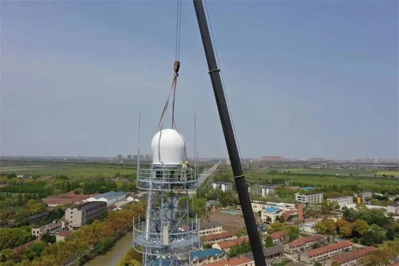 4月19日,一顶直径2.88米的乳白色雷达天线罩,被缓缓吊装在高60米的上海崇明区长征通信铁塔顶端,标志着上海第五部x波段相控阵天气雷达安装完毕。