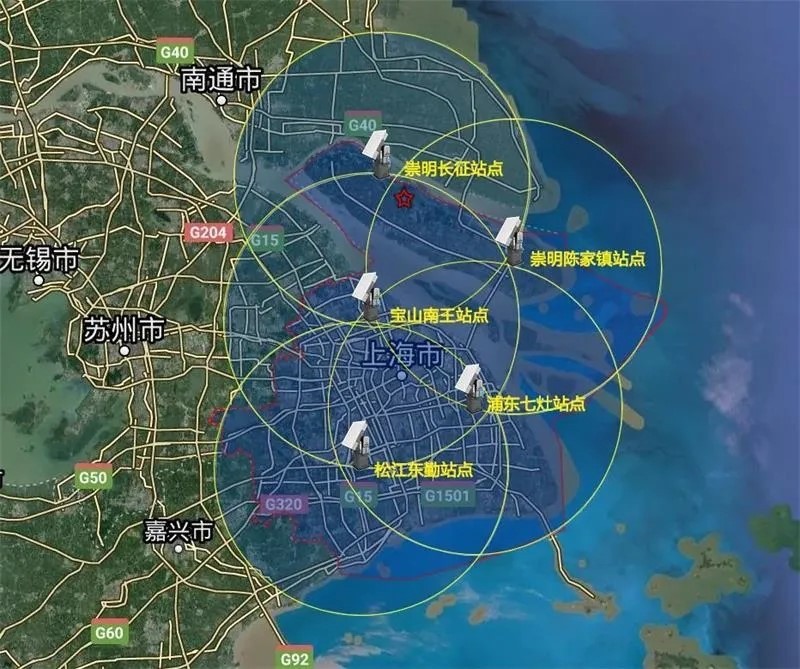 上海五部x波段相控阵阵列天气雷达组网布局图