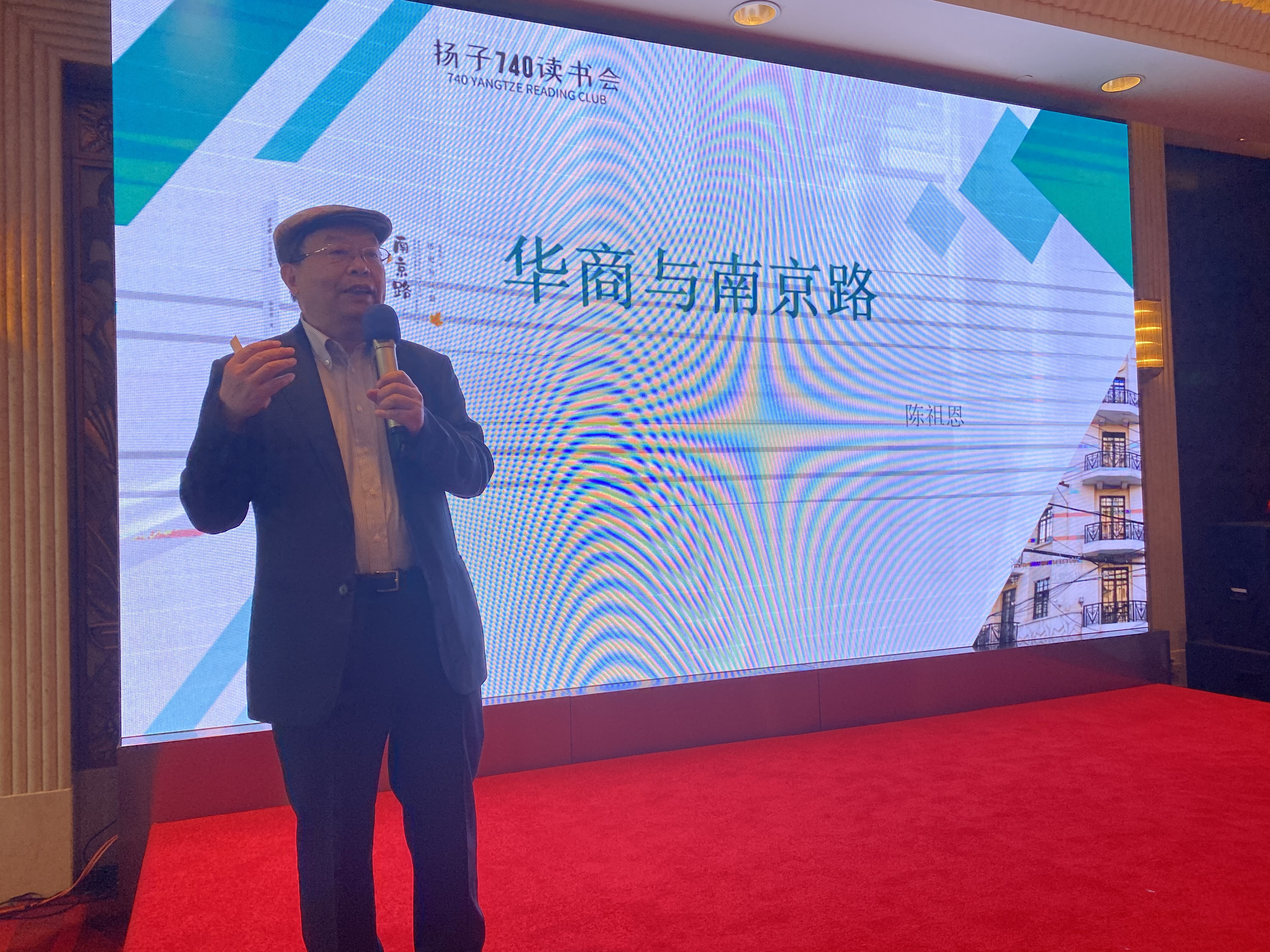 今天是世界读书日,由南京东路街道、上海人民出版社、上海扬子精品酒店(上海扬子饭店)共同主办的《南京路:历史与风景》读书分享会暨“城市之心”微旅行线路发布仪式在上海扬子饭店举行。这也是三方开展“行走城市之心,品味海派文化”社区文化共建系列活动“扬子740读书会”的首场。《南京路:历史与风景》作者、上海社科院历史研究所特约研究员、中国近代史学科教授陈祖恩和来自周边楼宇的白领以及线上报名的海派文化爱好者100余人参加活动。