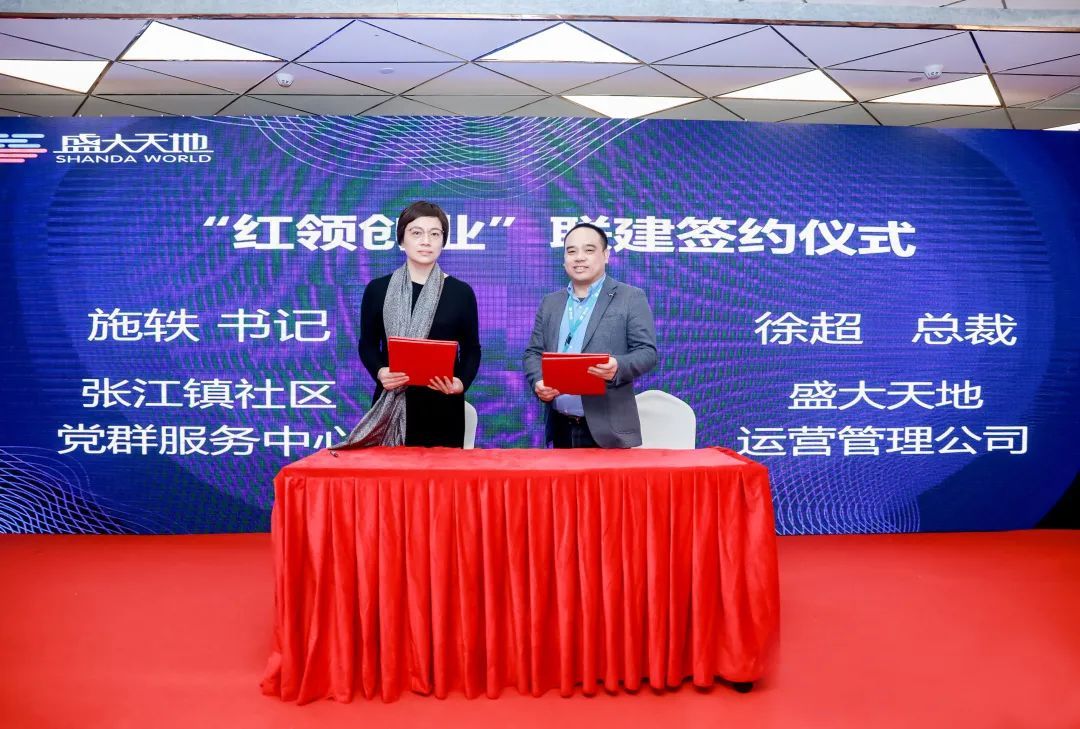 张江镇社区党群服务中心还与盛大天地·源创谷举行了签约仪式,双方将联合建设的“红领创业”基地,用创业带动更多就业岗位的出现。