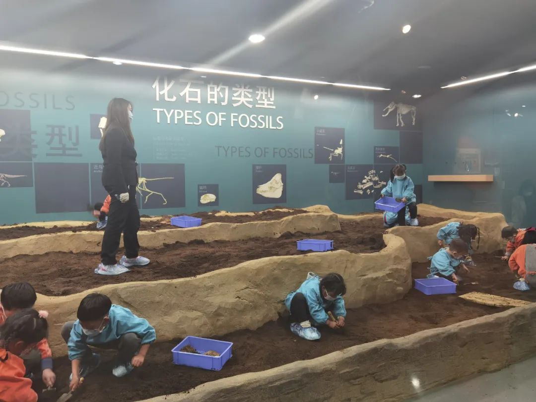 这是馆内 “探索中心” 片区的“化石挖掘”体验课堂。在这里,孩子们不仅可以化身“考古学家”,感受从泥土中挖掘出化石的惊喜,还能在专业老师的指导下亲身体验考古作业整套流程。