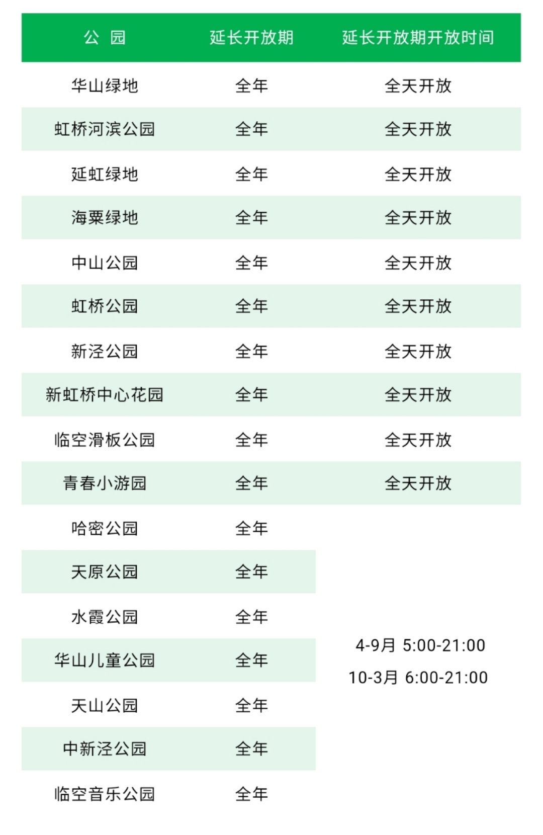 各公园如在开放时间段上有所调整