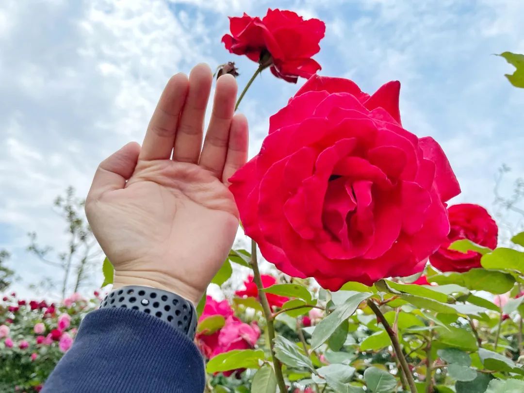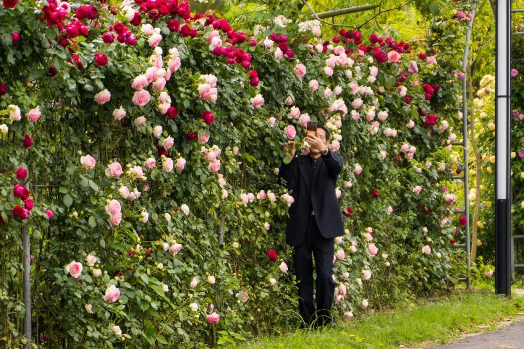 姹紫嫣红的玫瑰园吸引了不少游客。居住在附近的高老伯是第一次来玫瑰园,他穿梭在花海里用手机记录下美景。他笑着说:“从来没见过这么多玫瑰花、月季花,非常赏心悦目。”