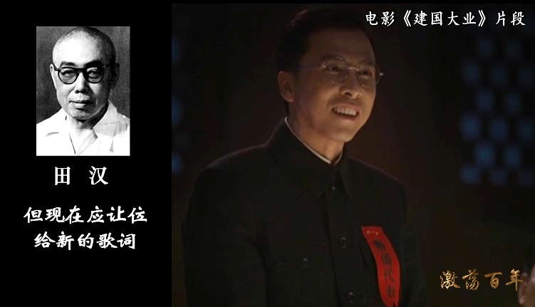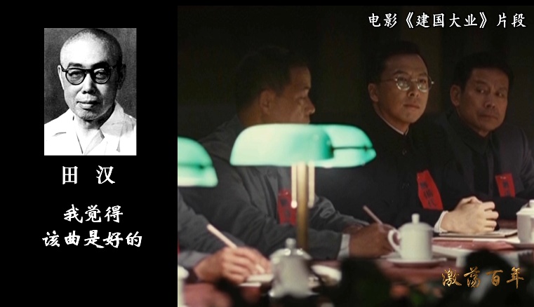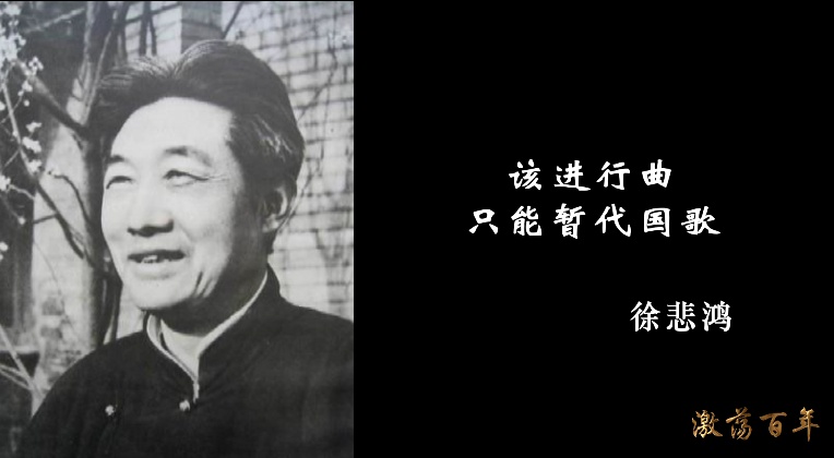 比如徐悲鸿,“该进行曲只能暂代国歌”;比如黄炎培“我觉得词不改好些”。反而是原词作者田汉比较谦虚“我觉得该曲是好的,歌词在过去它有历史意义,但现在应让位给新的歌词”。